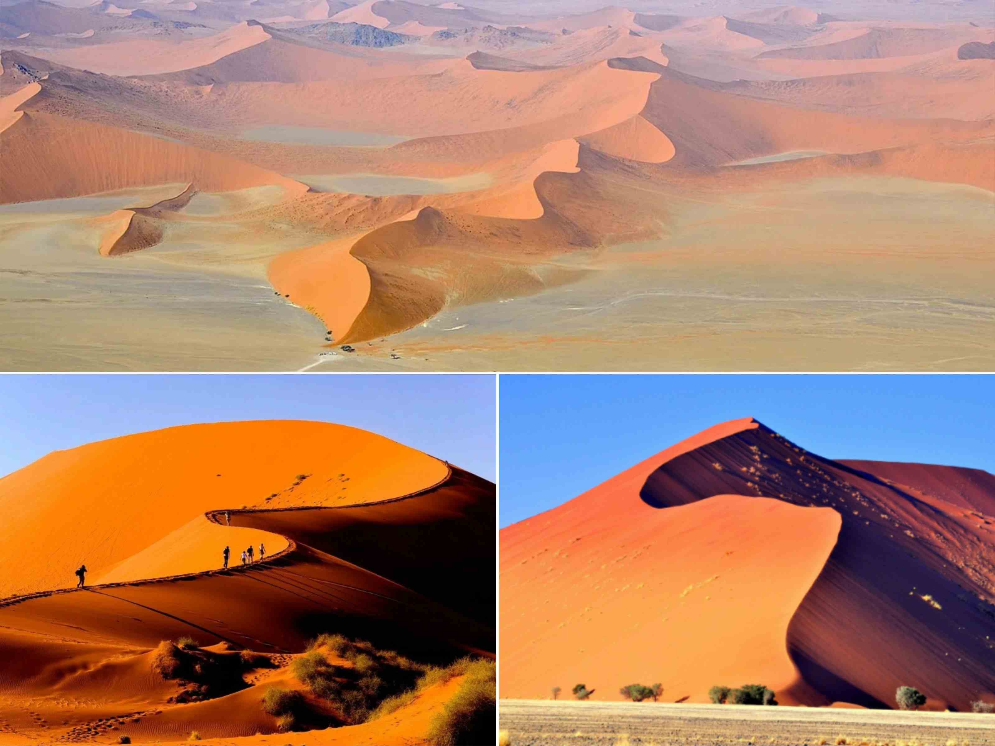 ★苏丝斯黎沙漠,《国家地理》杂志力荐的非洲旅游景点,拥有地球上最大最古老的红沙丘,325米高的世界最高沙丘拔地而起,红色沙粒随阳光变化呈现出不同色泽,晨曦中如海市蜃楼,黄昏下似金橘铺地,步行进入死亡谷,千年古树与壮观红沙丘相映,随手一拍都是大片。