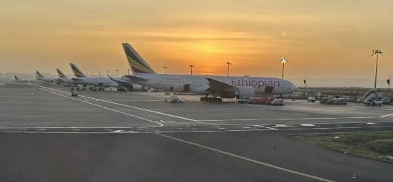 当飞机像一只勇敢的大鸟,穿过黎明前的黑暗,稳稳地降落在亚的斯亚贝巴的时候,我睁开眼,哇,眼前的美景就像一幅绝美的画卷。第一缕阳光洒在跑道上,就像给跑道铺上了一层金色的地毯,美得让人窒息。飞机稳稳落地,仿佛在大声告诉我们:“欢迎来到非洲,准备好迎接新的挑战了吗?”