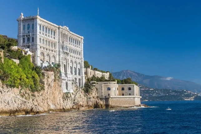 摩纳哥海洋博物馆,位于王宫附近。该馆始建于1910年,建筑主体依地中海悬崖而建。这里饲养超过4000条海洋生物,拥有450种地中海和热带物种。