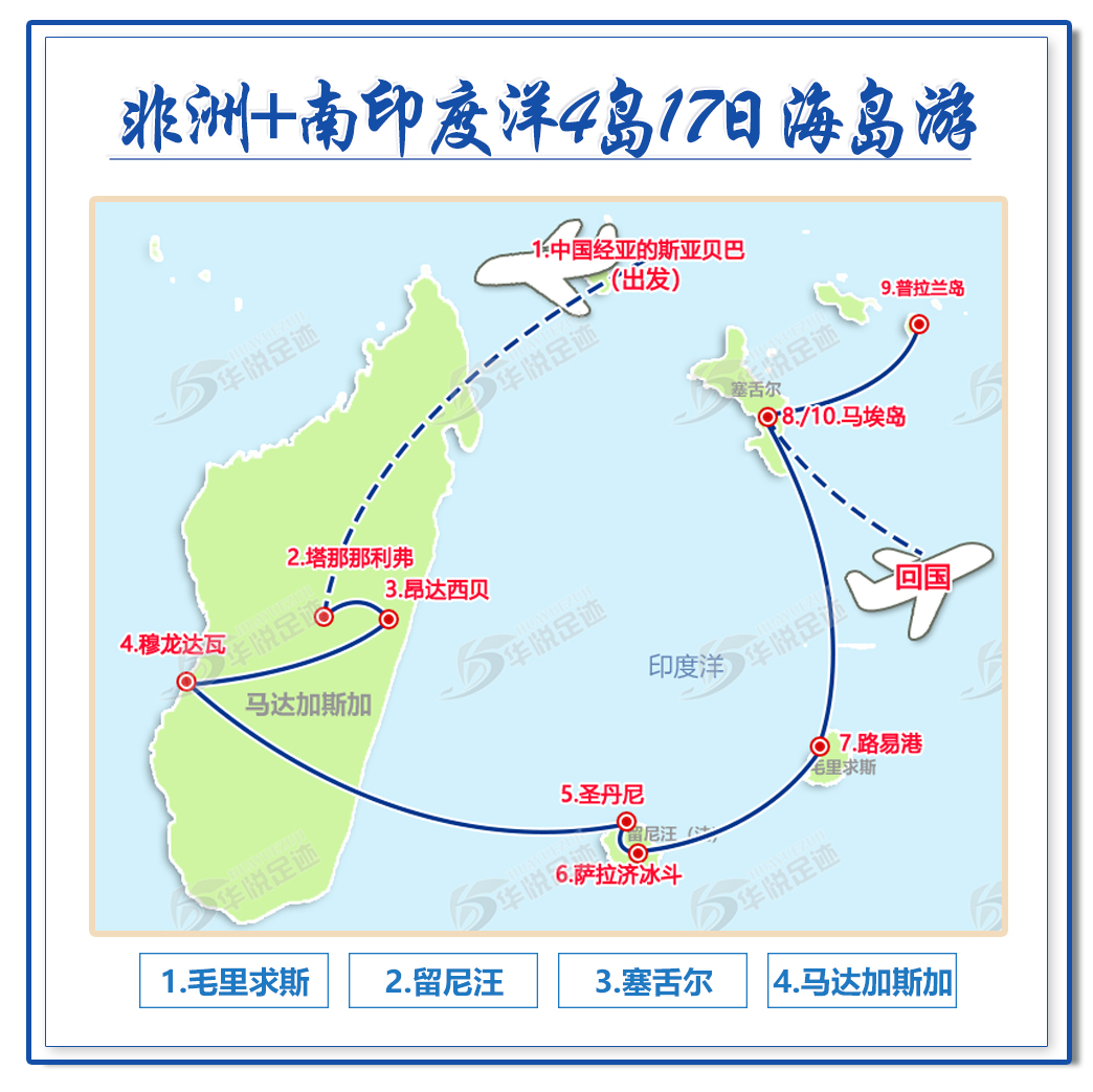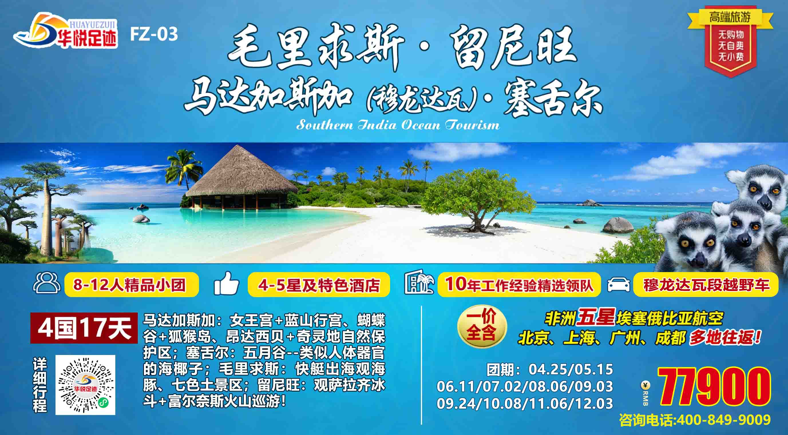 华悦足迹深耕非洲旅游,精心打造南印度洋四岛17天纯玩之旅,串联四大非洲必去国家,拒绝购物、不走马观花,选择华悦足迹,解锁非洲旅游最佳路线,赴一场与四大海岛的浪漫之约~