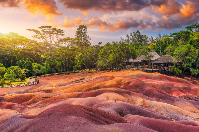 七色土景区:毛里求斯的核心地标,由火山矿物质经万年分化沉淀而成,在阳光的映照下,呈现出红、黄、紫、橙、棕等七种截然不同的色彩,宛如大自然打翻的调色盘,广袤而绚烂。漫步其间,脚下是斑斓土地,身旁是原始植被,仿佛置身梦幻仙境,是非洲旅游必去的国家中不可或缺的自然奇景,更是摄影爱好者的天堂。