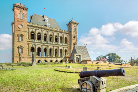 女王宫+蓝山行宫:马达加斯加的人文核心地标,也是非洲旅游必打卡的人文景点,承载着当地千年的历史底蕴。女王宫坐落于首都塔那那利佛的山顶,建筑风格融合欧式古典与当地传统特色,气势恢宏,站在山顶可俯瞰整座城市的全景;蓝山行宫是昔日皇室的避暑胜地,周边植被茂密、风景清幽,山间云雾缭绕,兼具人文底蕴与自然之美,全程领队专业讲解,带您解锁马达加斯加的历史人文密码。