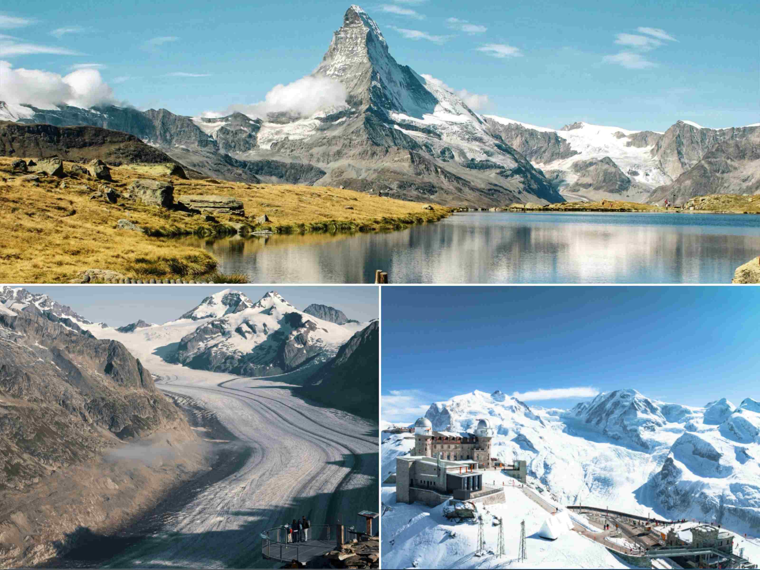 ★冰川雪山:登顶欧洲屋脊少女峰、仰望马特洪峰的巍峨,探访阿尔卑斯山区位居前二的阿莱奇冰川与戈尔内冰河,近距离触摸冰川的纯净,解锁瑞士旅游攻略里的自然盛景。