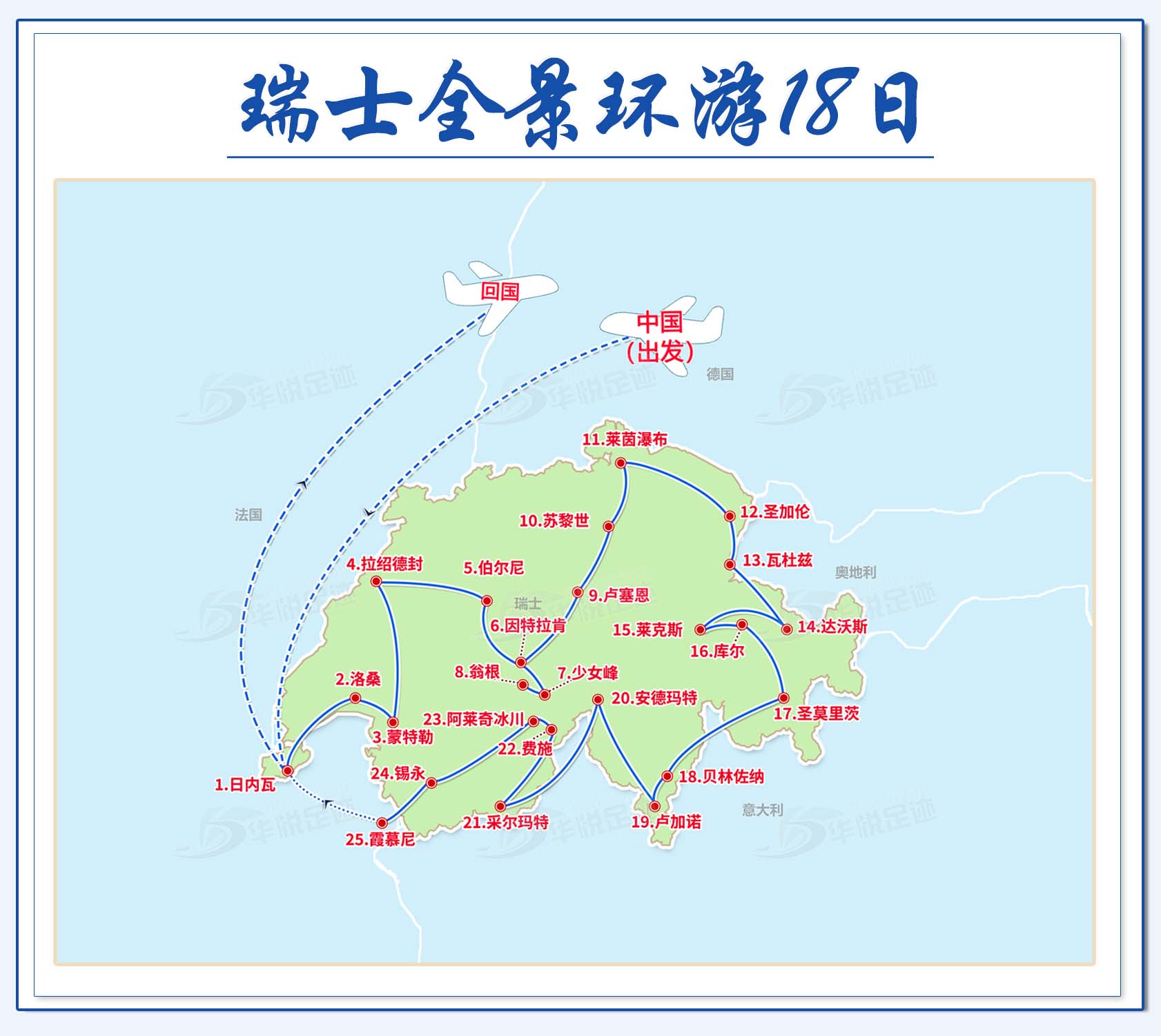 瑞士全景环游18天简易行程
