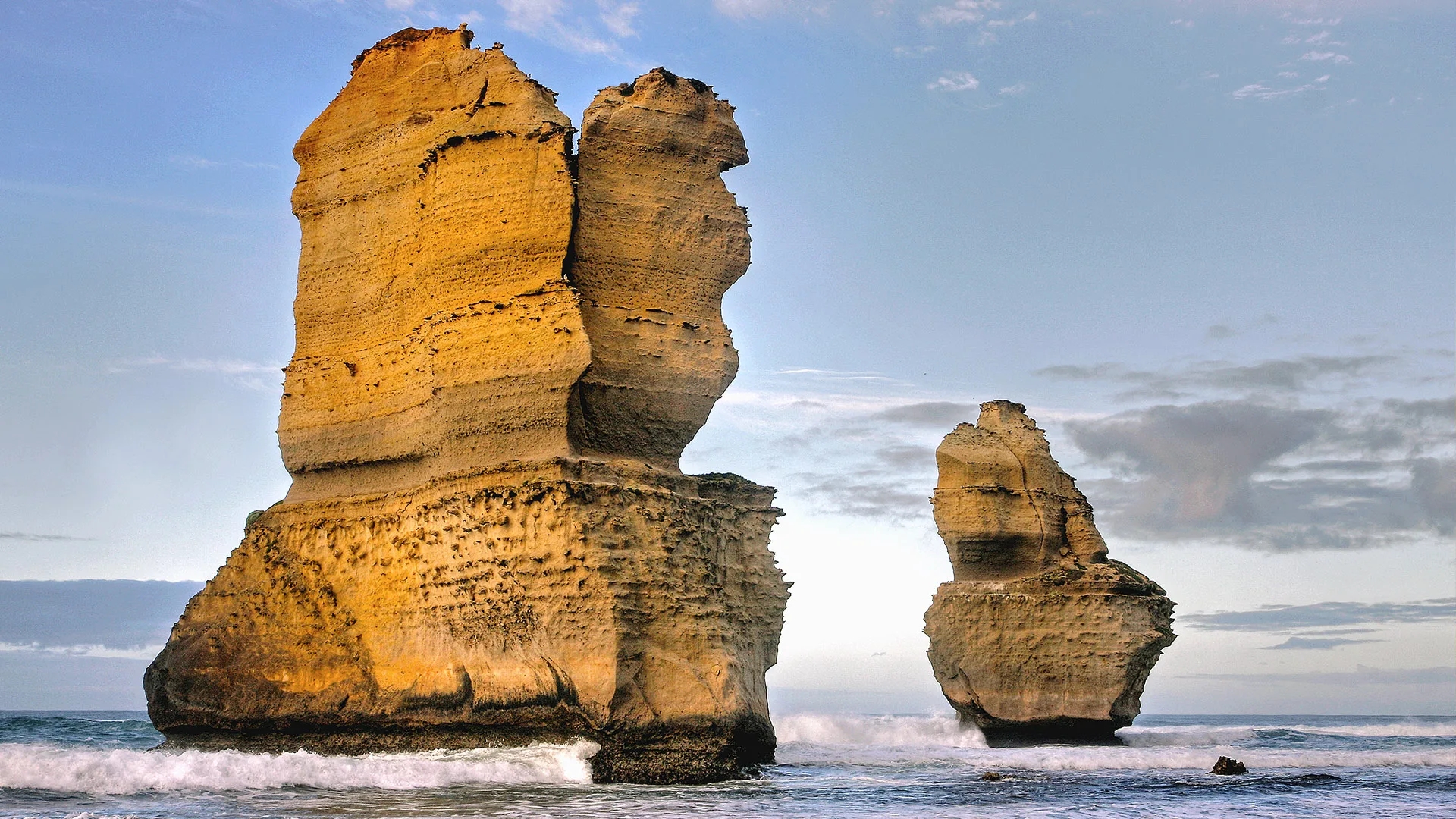 是大自然的鬼斧神工。十二块巨型礁石屹立海中,历经海浪亿年冲刷,日出日落时光影绝美,是大洋路的璀璨明珠。