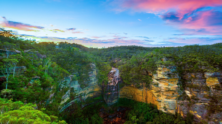 悉尼以西的世界自然遗产,因桉叶挥发物形成梦幻蓝雾得名。标志性三姐妹峰矗立峡谷,温特沃思瀑布飞流直下,藏有瓦勒迈松等珍稀物种,是自然与传说交织的秘境。
