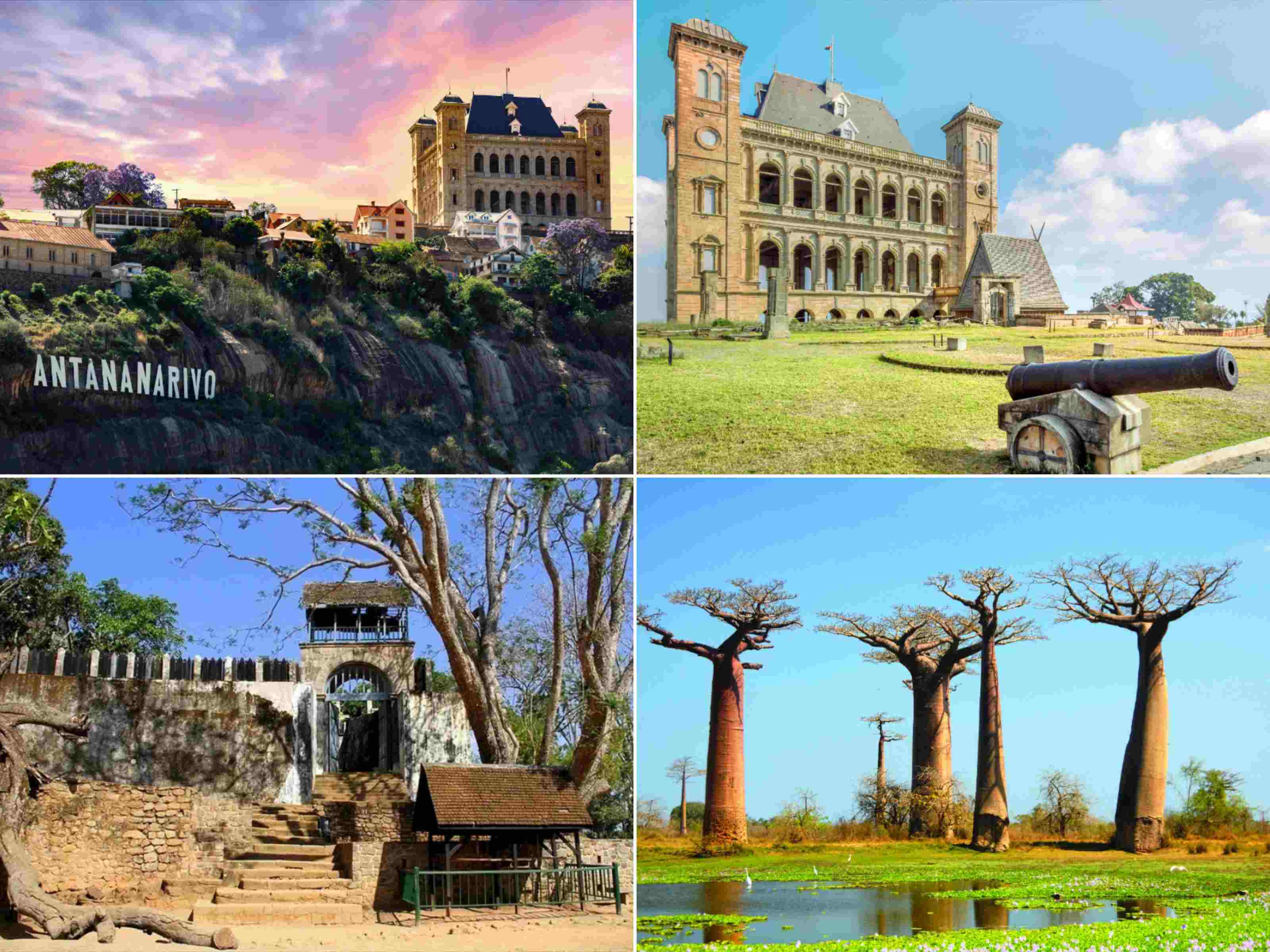 人文景观同样惊艳,女王宫与蓝山行宫作为世界文化遗产,雄踞山岭之上,是马达加斯加历史的见证,恢弘的建筑风格彰显着昔日王国的辉煌,漫步其间,仿佛能听见千年岁月的回响。穆龙达瓦作为马达加斯加著名的旅游城市,更是猴面包树的王国,夕阳下的猴面包树大道,数十株高大挺拔的猴面包树与落日交相辉映,构成一幅绝美的自然画卷,成为非洲旅游景点中最具氛围感的打卡地。