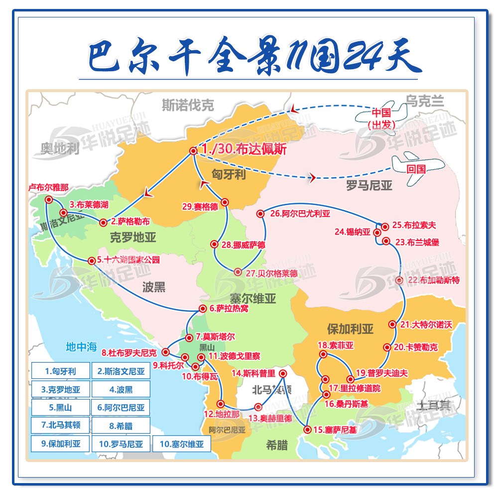 华悦足迹深耕欧洲旅游多年,深知每一位游客对深度漫游的期待,本次大巴尔干11国24天全景深度游欧洲旅游团,以 “精致、舒适、省心” 为核心,打造专属优质体验,让你无需费心整理巴尔干旅游攻略,全程无忧,尽情沉浸在巴尔干半岛的风光与人文之中。