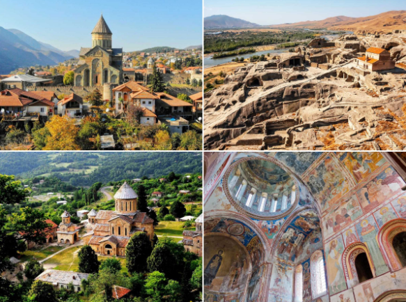 格鲁吉亚的姆茨赫塔古城,曾是王朝首都,生命之柱大教堂作为耶稣血衣埋葬地,千年以来始终庄严肃穆,中世纪建筑风格堪称教会建筑典范;乌普利斯岩城是罕见的石凿之城,洞穴教堂、酒窖保存完好,古人的智慧与坚韧在此尽显;格拉提修道院被誉为 “第二耶路撒冷”,精美壁画与镶嵌工艺,见证着格鲁吉亚的辉煌过往。