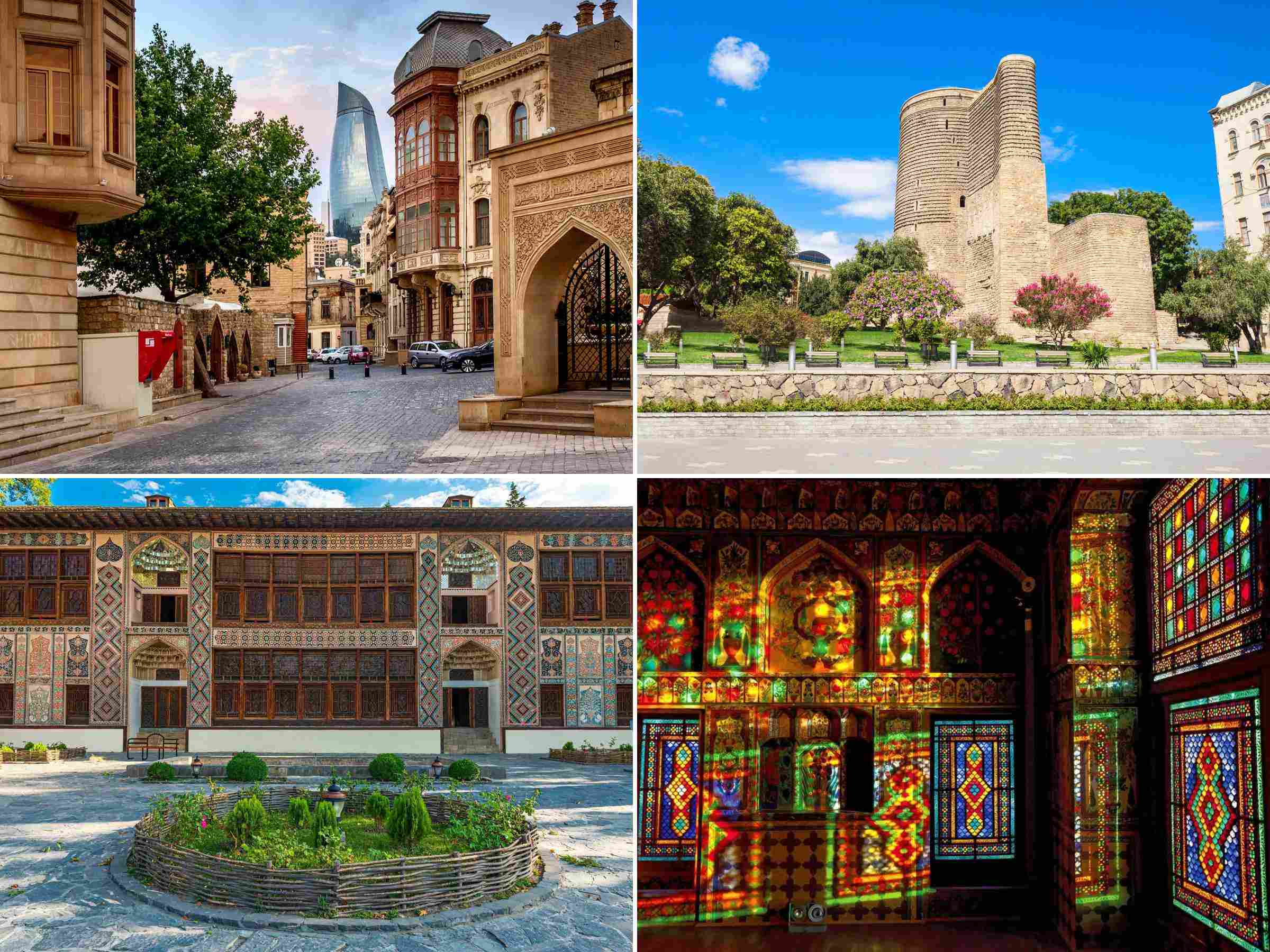 阿塞拜疆的巴库古城,“风之城” 的千年心脏,老城墙环绕着市集、清真寺与浴室,地标少女塔北圆南尖的造型自带神秘感,2000 年就入选世界遗产,塔内博物馆藏着巴库的岁月变迁;舍基Khans宫殿更是丝路瑰宝,彩色玻璃镶嵌的墙面流光溢彩,搭配古老的蚕丝驿站,仿佛能看见当年商队往来的繁华。