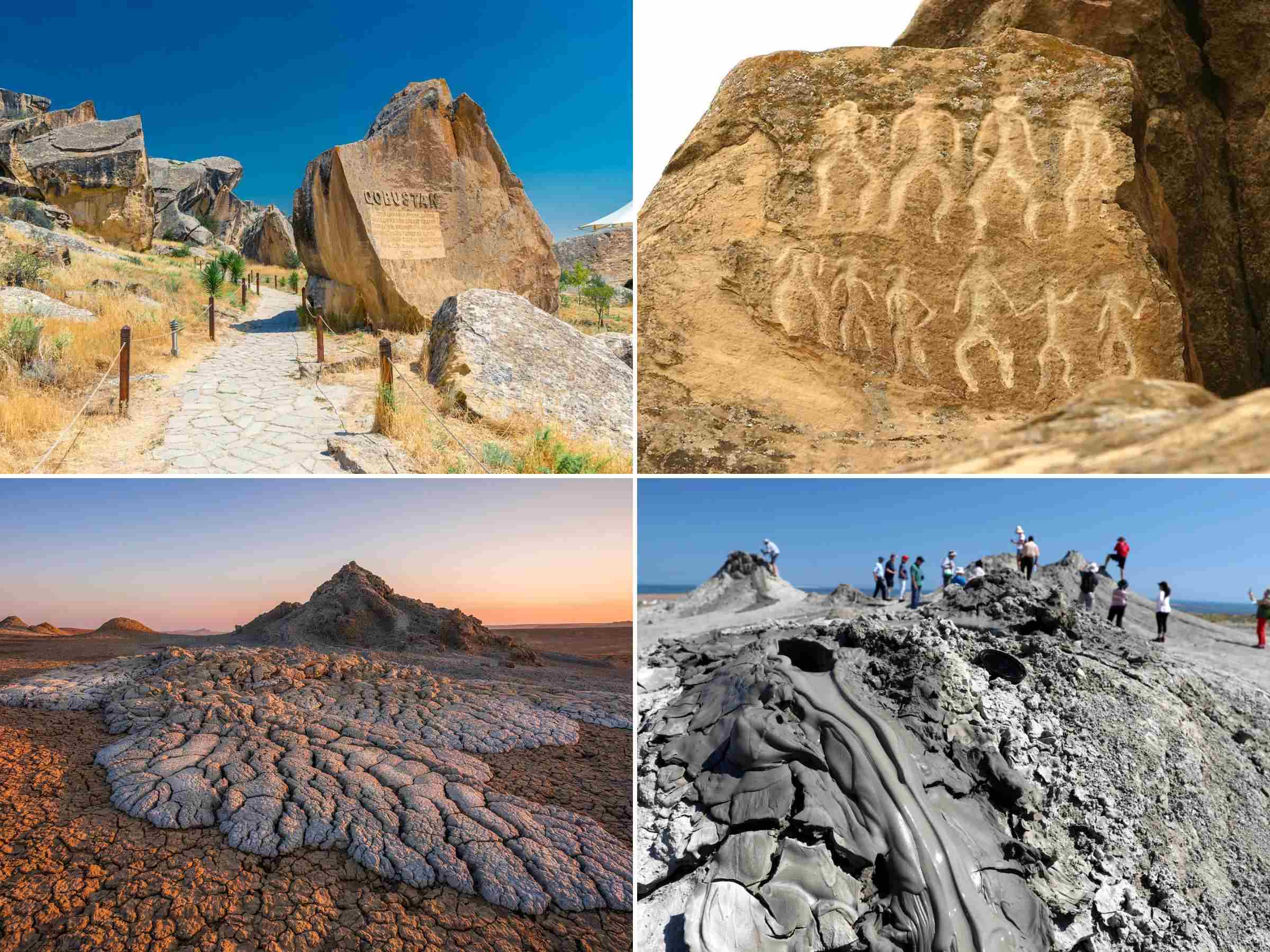 day2:探秘戈布斯坦史前岩画与泥火山奇观,俯瞰里海风光;漫步巴库古城,打卡少女塔、希尔旺沙宫殿,邂逅火焰塔与阿利耶夫文化中心的现代艺术之美。