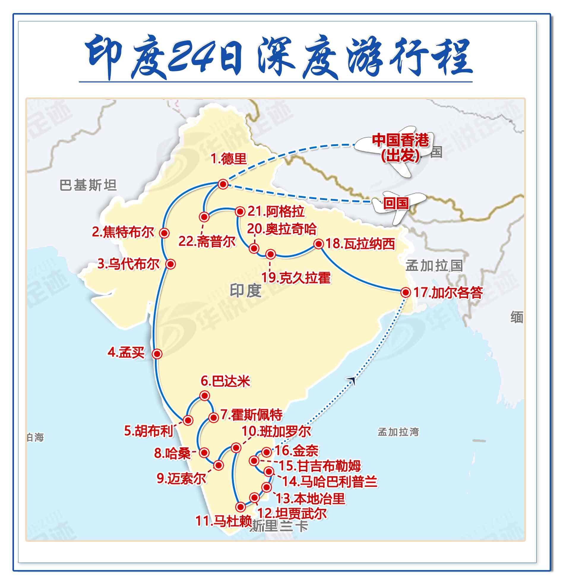 在这片被诸神眷顾的土地上,恒河梵音涤荡心灵,泰姬陵诉说永恒爱恋,千年神庙镌刻文明密码,帝国残垣见证岁月沧桑。华悦足迹印度24天深度探秘亚洲旅游团,纵贯印度北部金三角与南部文明腹地,一站式解锁德里、瓦拉纳西、阿格拉、斋普尔、乌代布尔、孟买、亨比、金奈、马杜赖、加尔各答等 17座传奇之城,不用费心做攻略,跟着专业印度旅游团,沉浸式感受信仰的力量、建筑的震撼与文明的厚重,把一生必打卡的印度旅游景点一网打尽。