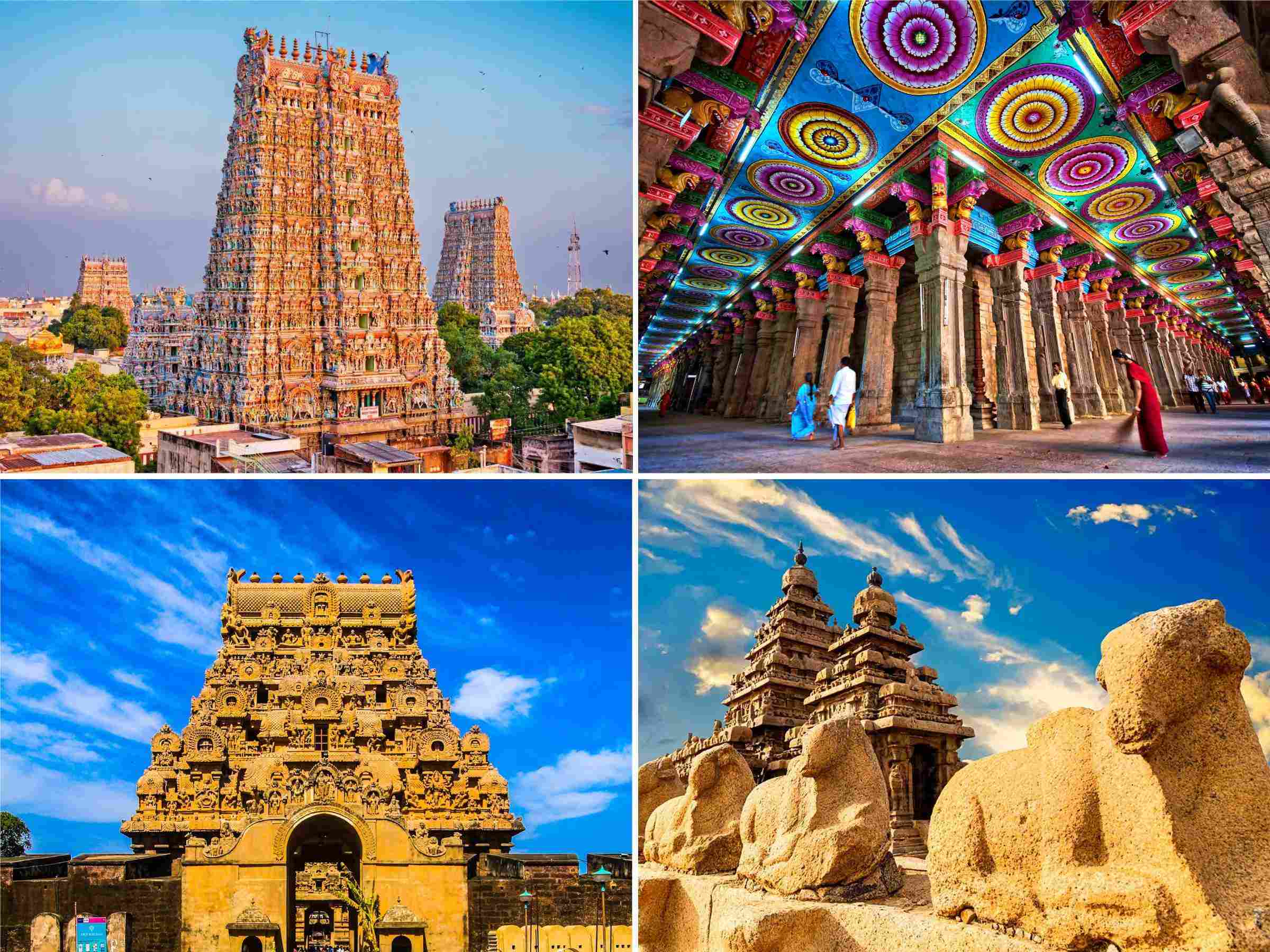 泰米尔纳德邦是达罗毗荼建筑核心区域,汇聚印度最宏伟神庙。马杜赖米娜克希安曼神庙占地广阔,12座高塔布满精美神像,是南印寺庙建筑巅峰;坦贾武尔布里哈迪希瓦拉神庙建于11世纪,61米高塔直插云霄,是朱罗王朝建筑艺术极致展现;金奈海岸神庙沐浴孟加拉湾晨光,历经千年海风侵蚀依旧屹立,五部战车神庙由整块巨石雕成,是南印建筑原型。
