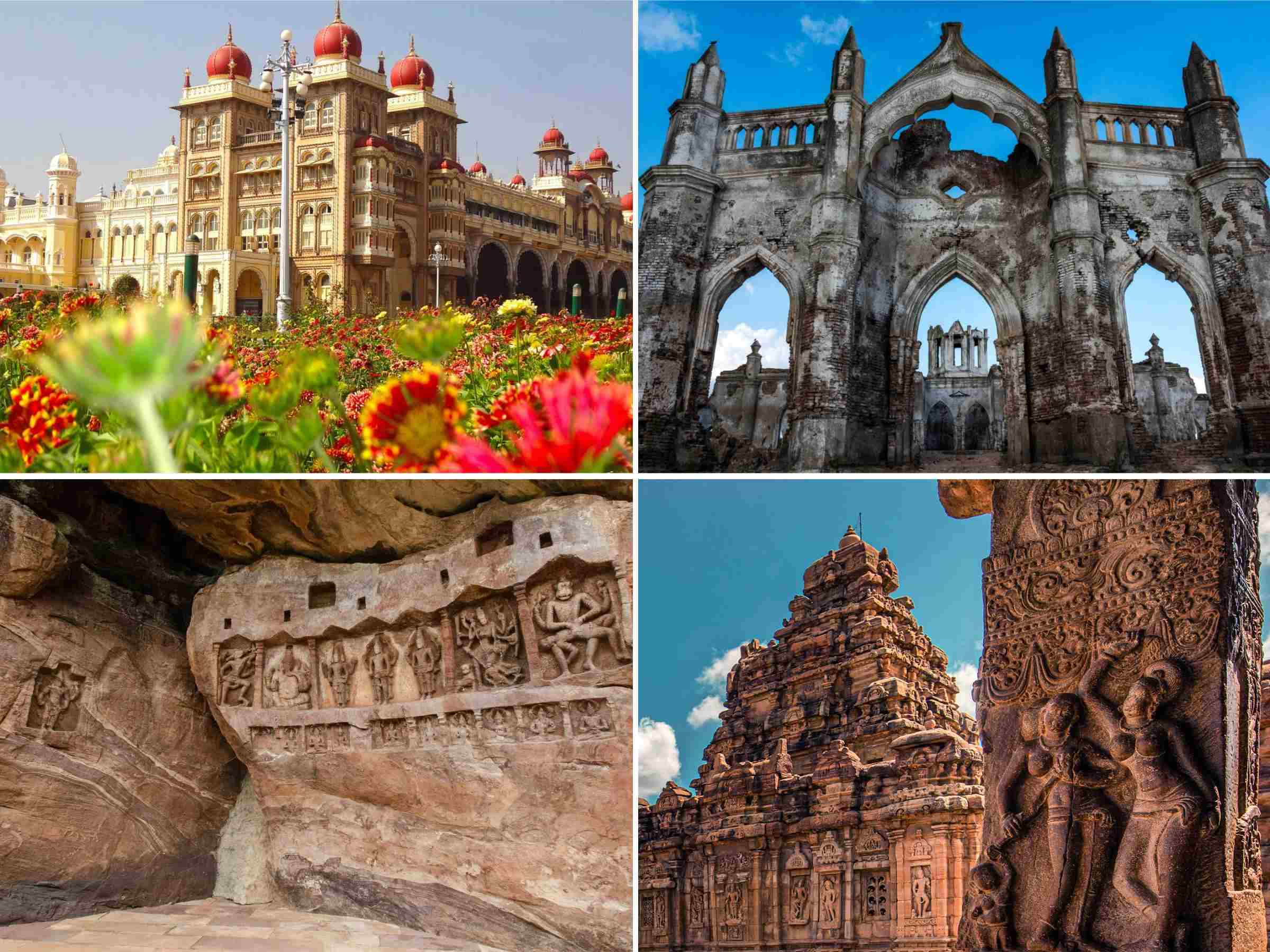 迈索尔皇宫金碧辉煌,堪比印度版 “白金汉宫”,黄金穹顶熠熠生辉,宫内壁画、雕塑珍藏无数;哈桑的霍伊萨拉神庙雕塑繁复精美,历经百年建造,是霍伊萨拉帝国建筑典范;水下教堂随季风半淹半现,哥特式建筑与湖水相映,奇幻如童话;巴达米石窟、帕塔达卡尔建筑群融合南北印度建筑风格,是印度教艺术源头之作,每一处都值得细细探寻。