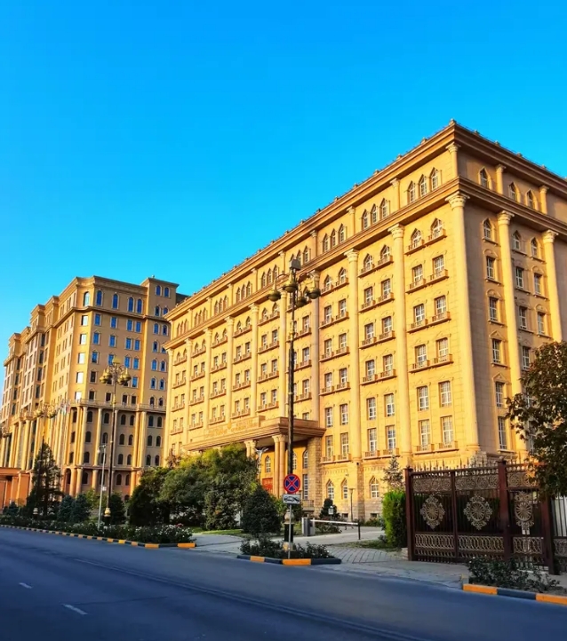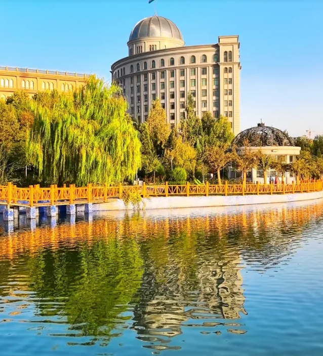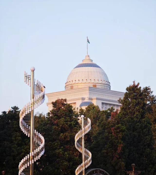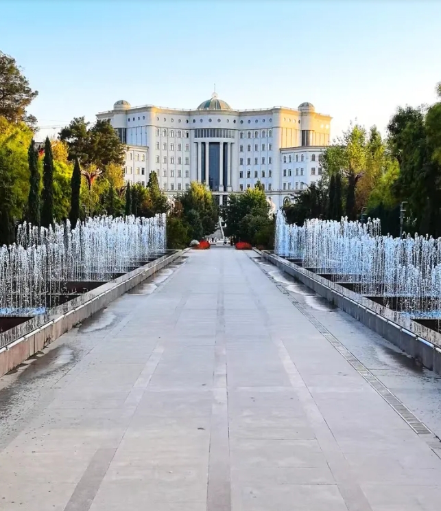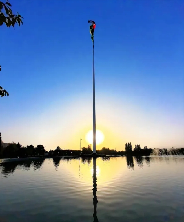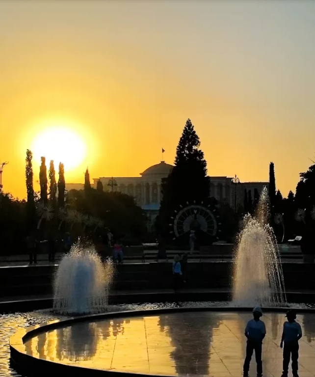 杜尚别的阳光特别炽热,蓝天更蓝,反射出明净温柔的光芒。城市处处是绿化,绿树环抱,林木苍翠,高大挺拔。