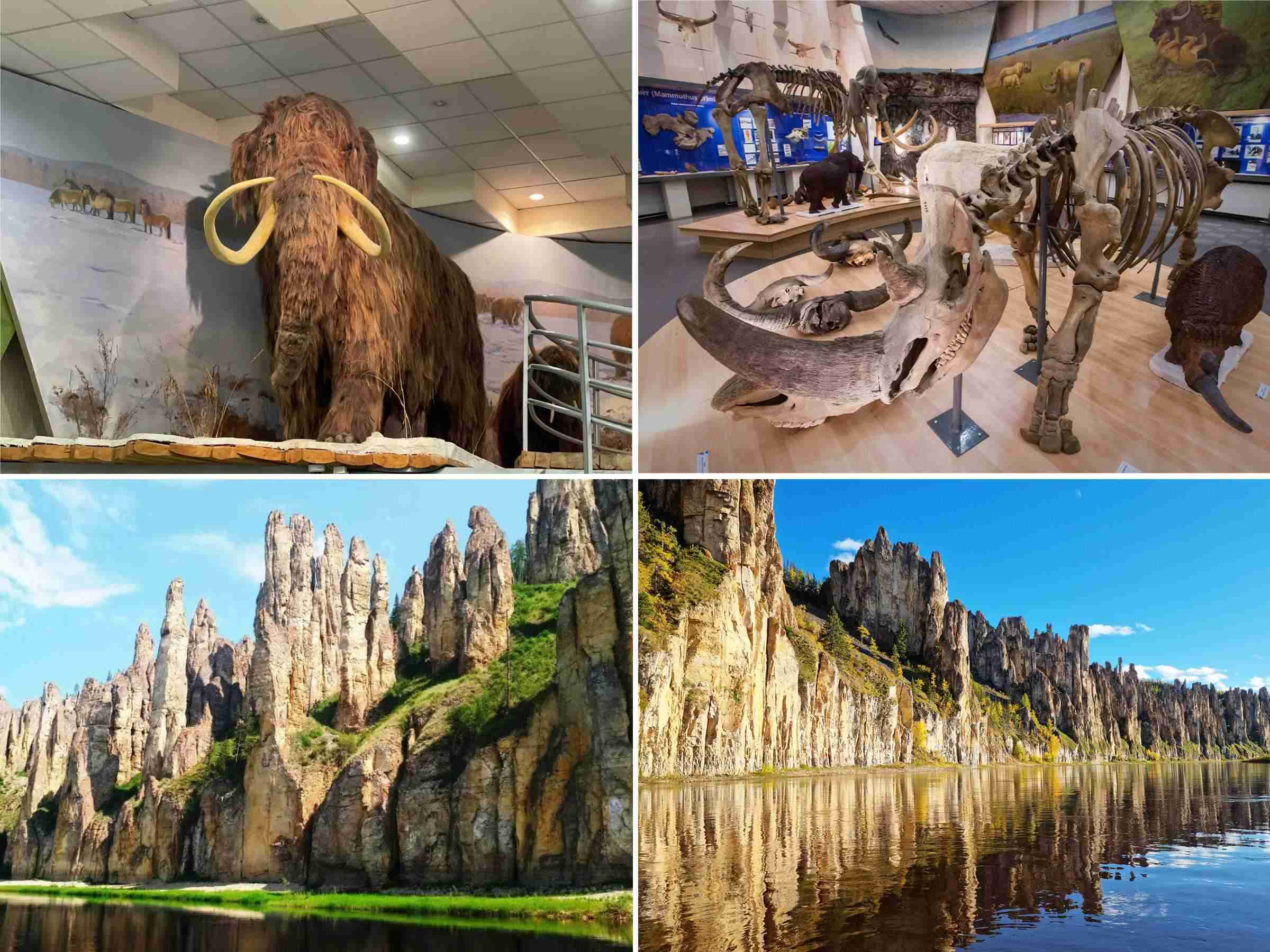 您将走进世界顶级猛犸象博物馆,近距离观赏冰封万年的猛犸象完整遗骸、软组织、骨架及冰期动植物标本,仿佛穿越回数百万年前的冰河时代,亲眼见证史前巨兽的真实模样;乘船游览勒拿石柱国家公园,观赏亿万年前地质运动造就的巨型石林奇观,石柱巍峨矗立、连绵成片,鬼斧神工令人叹为观止,沿徒步道登顶观景台,可将整片石林与蜿蜒河川尽收眼底。