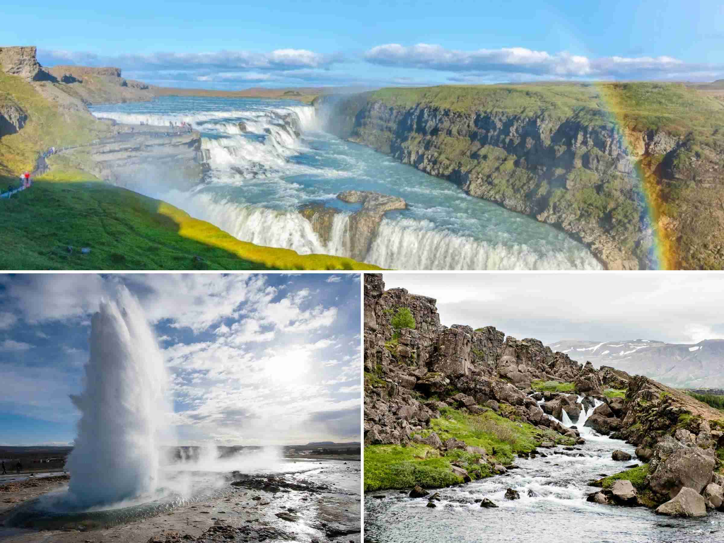黄金圈三大奇观震撼人心:辛格维利尔国家公园横跨欧美两大板块,是世界最古老民主议会遗址;间歇喷泉定期喷发,水柱直冲云霄,壮观无比;黄金瀑布气势磅礴,水雾在阳光下折射金光,被誉为 “瀑布皇后”。