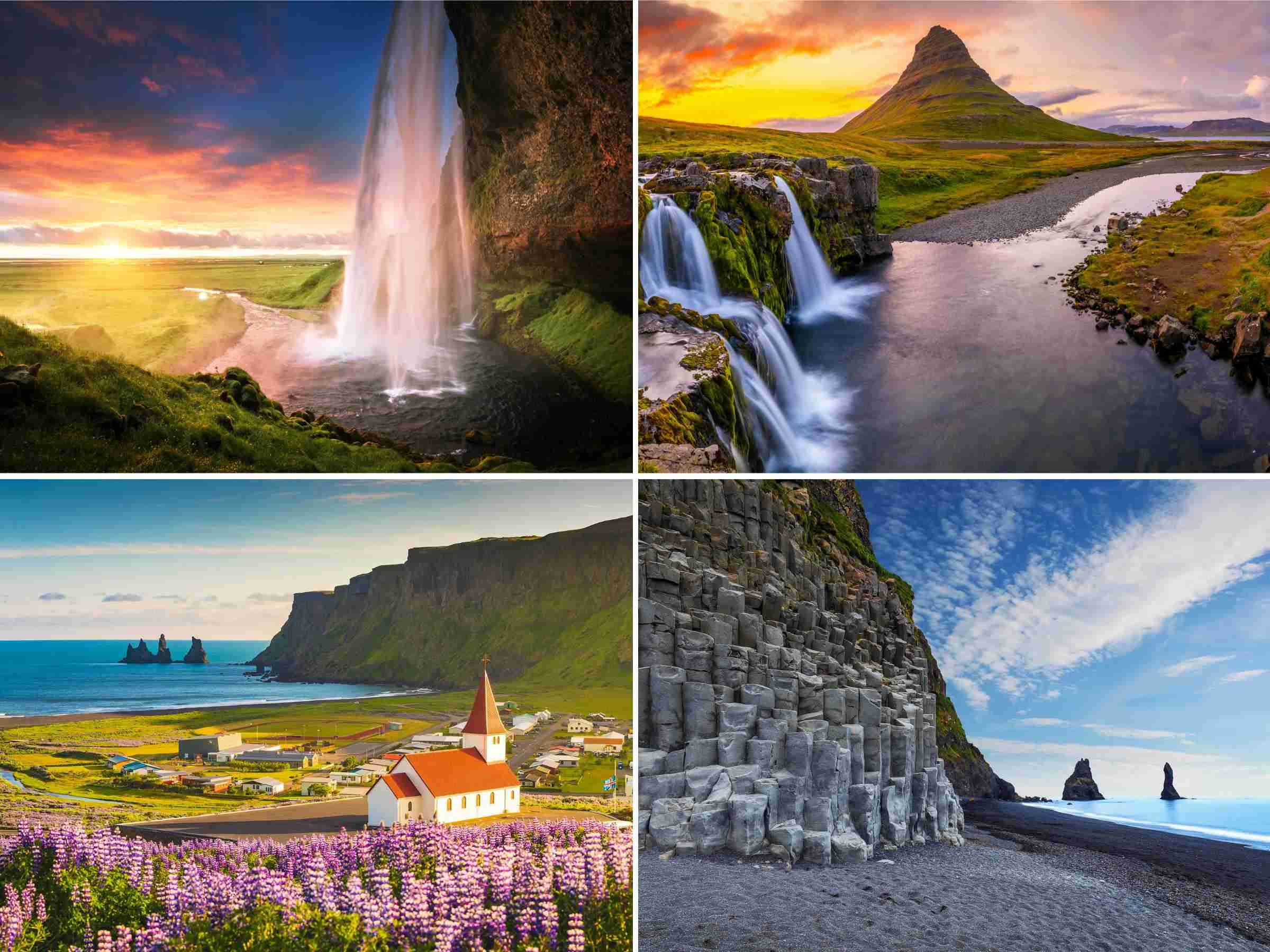 塞里雅兰瀑布可以走入水帘洞后,如梦似幻;斯科加瀑布双彩虹常现,是《雷神 2》取景地;维克黑沙滩与风琴岩峭壁漆黑神秘,柱状玄武岩整齐排列,宛如大自然的巨型风琴;杰古沙龙冰河湖浮冰晶莹剔透,钻石黑沙滩冰块如宝石散落,是多部好莱坞电影取景地;米湖地区火山地貌完整,泥浆喷泉、黑色古堡、神灵瀑布充满北欧神话色彩;斯奈山半岛被誉为冰岛缩影,草帽山、布迪尔黑教堂,每一处都是摄影师的终极天堂。