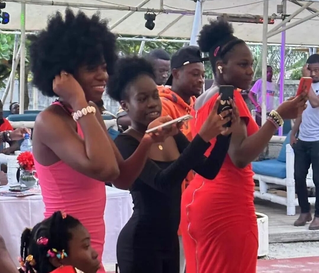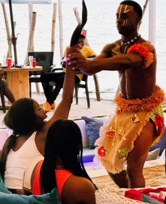 阳光如同金色的丝线,轻柔地洒在波光粼粼的加蓬利伯维尔海岸线上。我们文化考察团一行人,在中国驻当地旅游公司邓总的热情引领下,来到了一家充满异域风情的海滩酒吧。这里,即将上演一场极具加蓬传统特色的表演。眼前,是一片搭起的白色帐篷,宛如一朵朵盛开在沙滩上的巨大蘑菇。人群熙熙攘攘,欢声笑语与激昂的鼓点交织在一起,仿佛是一曲热闹非凡的交响乐。突然,一阵激昂的鼓声如惊雷般响起,瞬间吸引了所有人的目光。所有人的视线都不约而同地聚焦到那条酱红色的步道上——一场融合了原始部落风情与现代健美的男模走秀,即将震撼上演。