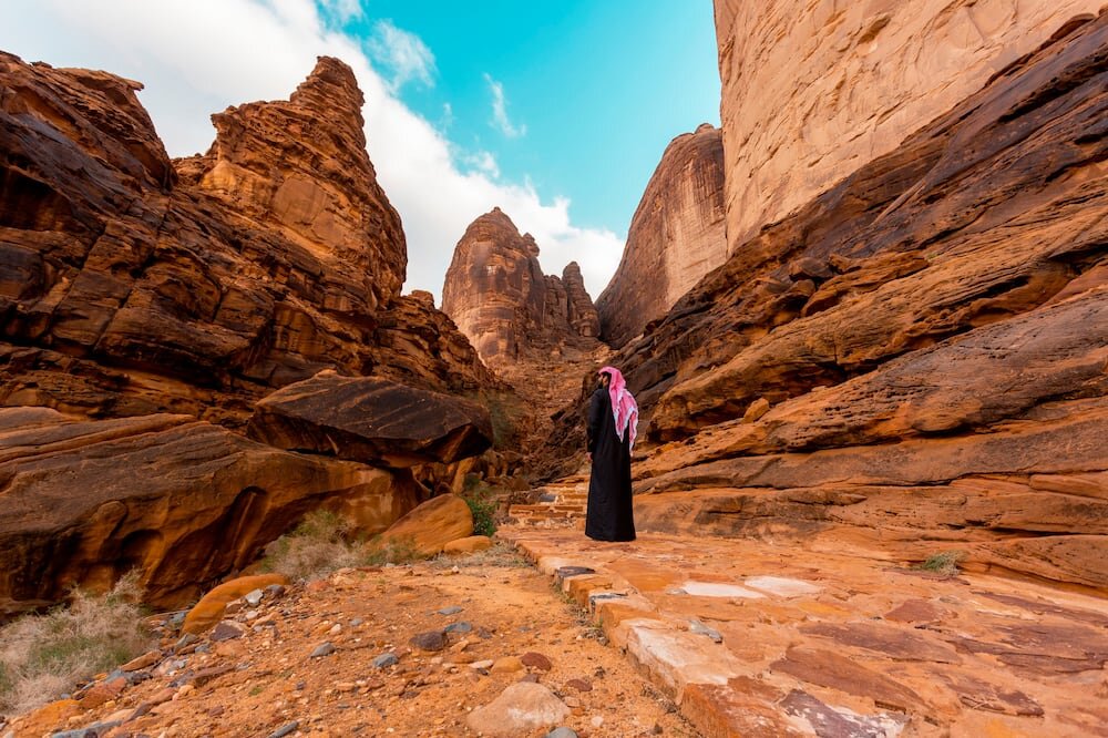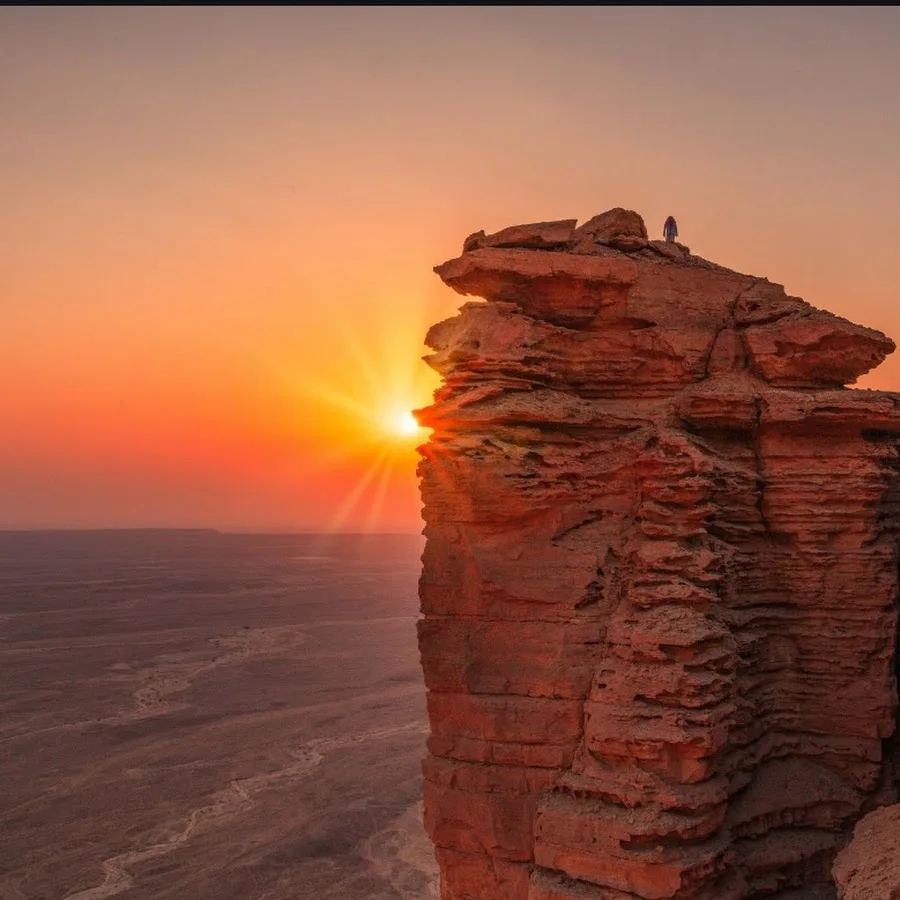 位于利雅得西北图崴山脉山脊。300 多米悬崖俯瞰荒漠,曾为海底与古商路起点,黄昏落日美如梦幻,是冒险与观景的绝佳之选。