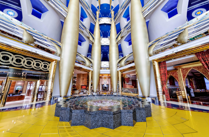 【迪拜帆船酒店】以帆船造型闻名,是全球首屈一指的七星级奢华酒店。设施极致豪华,服务贴心周到,尽显尊贵与高雅。