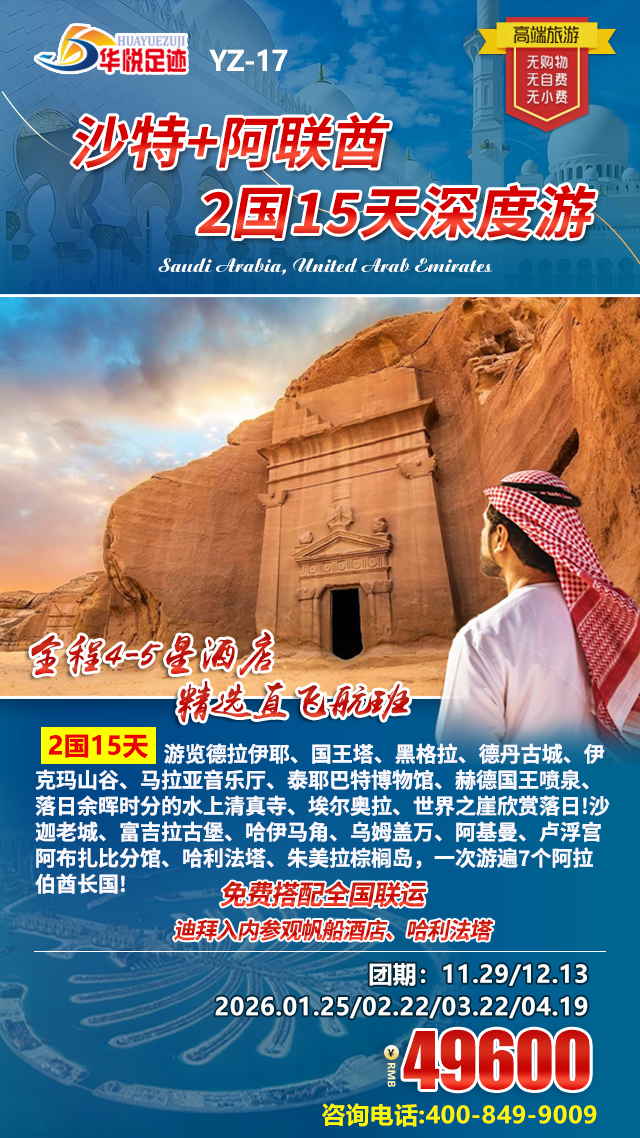【黑格拉】2008 年列入世界遗产名录。这里有纳巴泰文明遗迹,百余座精美岩墓,雕刻精湛,见证古老辉煌,是探秘历史的绝佳之地。
