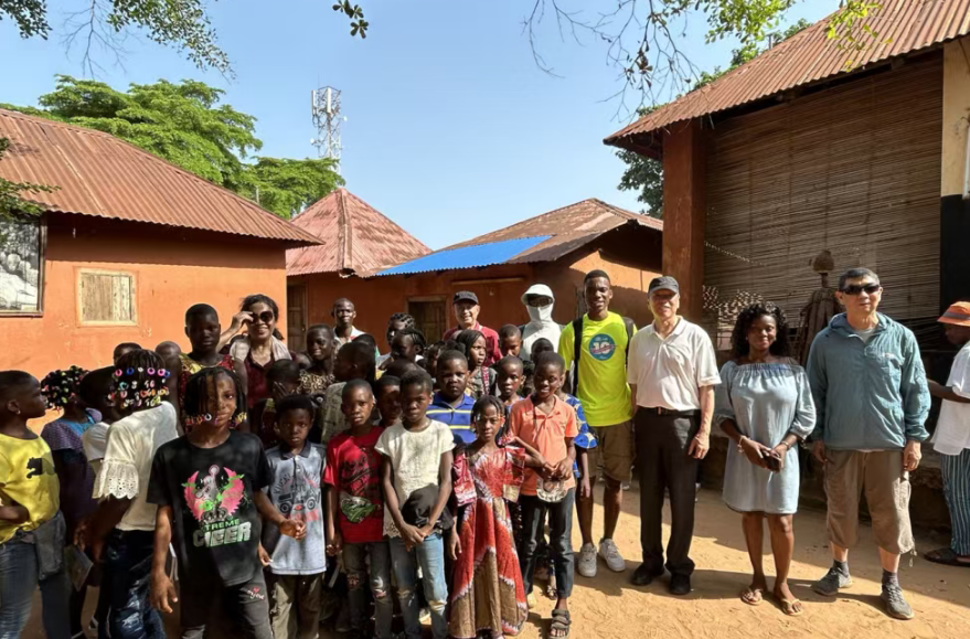 正听得入神,一阵轻快的脚步声传来 —— 一队身着校服的学生走进了博物馆。讲解员笑着补充:“这里可不只是展示文物的地方,更像贝宁的‘历史教育基地’,常有学生组团来此触摸鲜活的历史。” 我们见状,主动向带队老师提出合影请求,老师笑着点头应允。快门按下的瞬间,孩子们明亮的笑脸与王宫的红墙相映,成了此行意外的温暖印记。