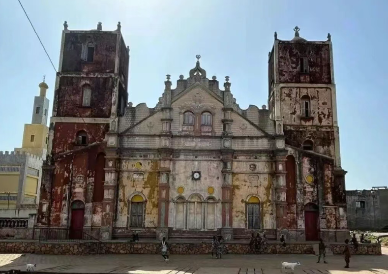 目光往上移,三层方形钟楼的砖石颜色明显分层:底层是深褐色的老砖,中层掺了浅灰色的修补材料,顶层则覆盖着赭色陶瓦。“1954 年教区从乌达迁到这里,钟楼加了一层,还换了陶瓦顶。” 阿莫斯指着中层砖石上的刻痕,“你看这行模糊的‘1954’,就是那时刻的 —— 从殖民传教站变成本土教区中心,先得在建筑上改头换面。” 风掠过钟楼顶端的陶瓦,发出沙沙声响,远处诺奎湖的水汽混着风飘来,我忽然想起资料里说,最初钟楼是铅制屋顶,独立后贝宁人换成了本地陶瓦,不仅因为铅顶易被海风腐蚀,更因为陶瓦的赭色,能和周围民居的红土墙融为一体 —— 这是独立后 “文化自救” 的第一步:先让殖民建筑的 “外衣”,染上本土的颜色。