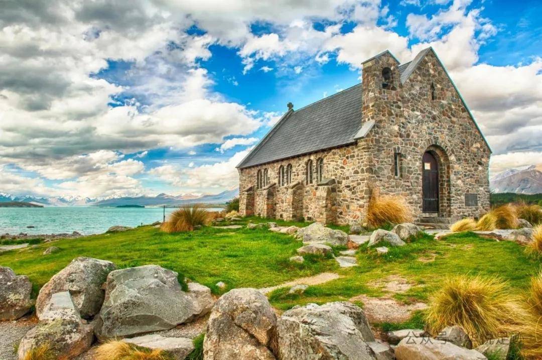 坐落于特卡波湖岸边,1935 年建成,哥特式石结构独一无二,背靠雪山,湖光山色环绕,是婚礼圣地与观星佳处。
