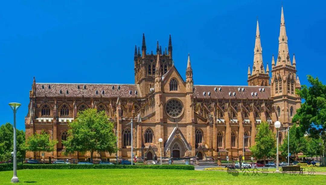 【圣母玛利亚大教堂】哥特式建筑典范,1821 年始建,尖塔高耸,彩绘玻璃璀璨。内部庄严肃穆,管风琴悠扬,是澳洲天主教精神中心与历史文化地标。