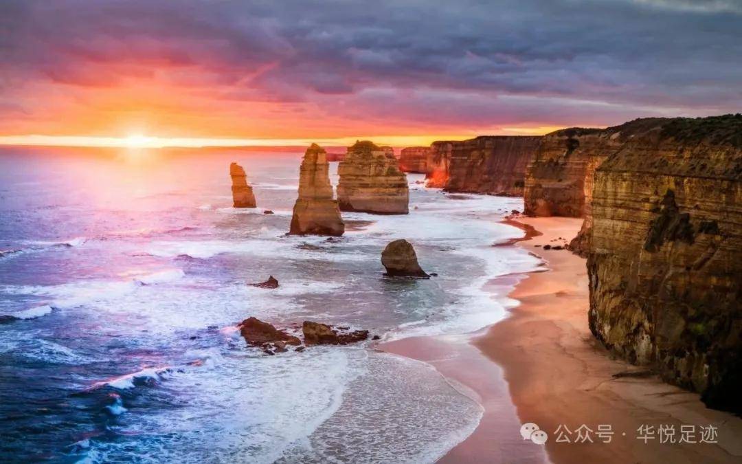 day12:澳大利亚 + 新西兰旅游行程带你邂逅大洋路的自然奇迹,打卡 “世界八大奇迹” 之一的十二使徒岩。这片被列为国家公园的秘境,历经数百万年风化与海水侵蚀,造就 12 座巨型断壁岩石,矗立海岸间气势磅礴。