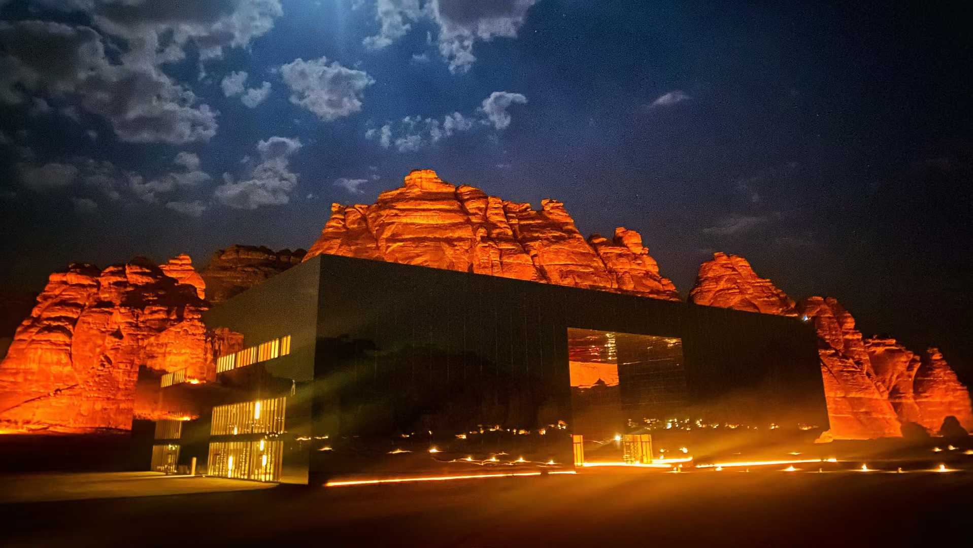 - 马拉亚音乐厅(Maraya Concert Hall):沙漠中的 “魔法盒”,也是建筑界的奇迹。这座音乐厅位于埃尔奥拉的沙漠腹地,外观由 1000 多块镜面面板拼接而成,总面积达 9000 平方米,在阳光下反射出沙漠与天空的景象,仿佛与周围的环境融为一体,时而消失在荒漠中,时而化作天空的镜像,充满了未来感与魔幻色彩。马拉亚音乐厅的设计理念是 “消失的建筑”,旨在最小化对自然环境的破坏,同时创造独特的视觉体验。内部则是世界级的演艺空间,可容纳 500 多名观众,配备了先进的音响与灯光设备,曾举办过古典音乐、爵士乐、世界音乐等各类演出。在这里听一场音乐会,窗外是无垠的沙漠与璀璨的星空,室内是悠扬的旋律,那种跨越时空的沉浸式体验,堪称一生难忘。