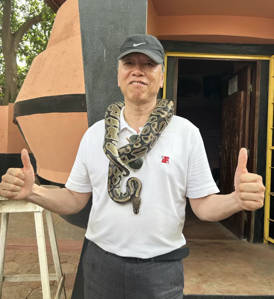 向导抱着叫“阿戈”的球蟒走过来,它花纹斑斓,鳞片在太阳下泛着老铜光,不像冷冰冰的爬虫,倒像件带图腾的软布。“它是这儿最老的守护者,”向导说,“世遗认定时,专家还特意提过,这种‘人蛇共处’的传统,是巫毒文化的活化石。”