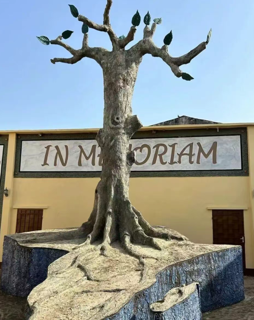走近《独立之树》,最先震撼我的是它的整体构思:艺术家以非洲地图的轮廓为基石,巧妙构建出一片肥沃而深沉的土壤,仿佛能嗅到历史的厚重气息。在这片孕育着无数故事的土地上,一株象征非洲大陆独立斗争历程的宏伟树木拔地而起,枝干遒劲,叶片舒展,每一处细节都透着对 “独立” 二字的敬畏与颂扬。站在作品前,仿佛能听见树木生长的声音,那是非洲人民挣脱束缚、追求自由的呐喊。