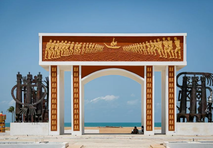 转身时,另一座纪念碑在不远处静静矗立 —— 贝宁独立后建造的回归门,以国家地图为轮廓,白色墙体上刻满返航黑奴的名字。阳光穿过镂空的地图纹路,在地面投下破碎的阴影,与不归之门的沉重形成奇妙的平衡。“当年很多黑奴在途中病死,尸体被抛入大海,海浪把他们的遗骸送回了故土。” 导游说,这两座门相距不过百米,却横跨了 “压迫与解放” 的整个世纪。