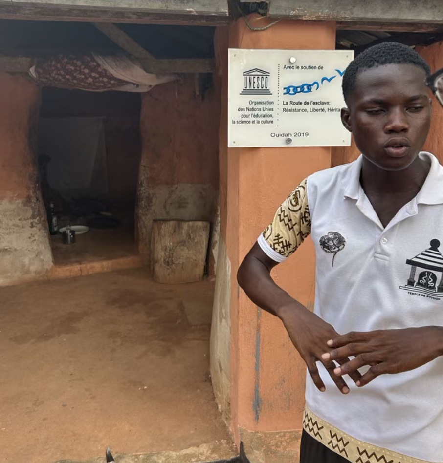 走进蛇神庙,穿印着LOGO T恤的工作人员先指了指门口的石碑,上面刻着“维达历史遗迹群——联合国教科文组织世界文化遗产”。“这庙可是世遗的核心之一,”他说,“既有老信仰,也藏着老故事。”