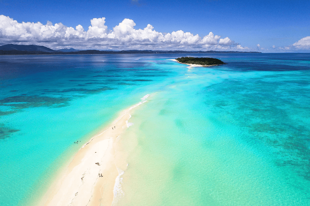 乘船前往神奇的伊兰贾岛,退潮时两片陆地会被雪白珊瑚沙滩相连,绿宝石般的海岸线与纯白沙粒相映,构成绝美的自然画卷。