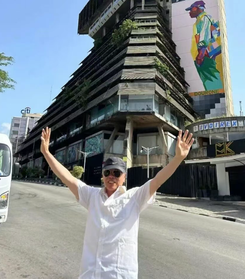 然而,进入90年代,全球农产品价格起伏不定,科特迪瓦经济遭受重创。金字塔楼逐渐失去往日热闹,人去楼空,2015年又遭遇了一场大火。政府曾计划将其改造为博物馆或酒店,却因资金问题搁置,最终沦为城市探险者的乐园。我们虽无法登顶俯瞰阿比让全景,但袁导描绘的画面令人神往:远处泻湖波光粼粼,科科迪桥“人”字形主塔与金字塔楼遥遥相对,象征着新时代复兴希望与旧时代荣光的无声对话,是阿比让城市发展的生动缩影。