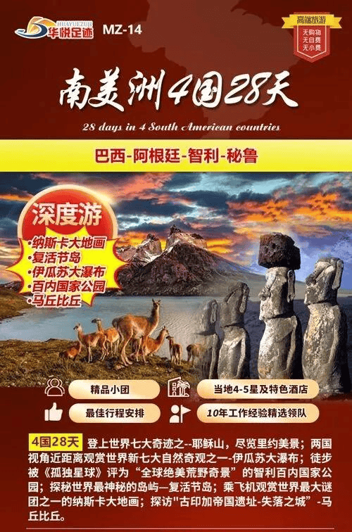 这场跨越南美大陆的旅程,串联起人文古迹与自然奇观,多元文化与狂野景致交织成难忘画卷。每一处风景都镌刻着南美独有的热情与深邃,为这场深度探索之旅画上完美句号。