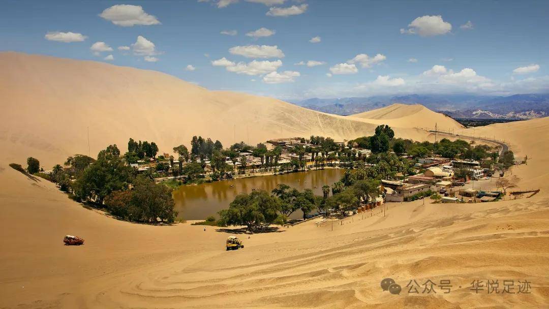 漫步瓦卡齐纳绿洲,这座被誉为 “南美洲最美绿洲” 的秘境,在茫茫沙海中勾勒出翠绿生机,湖水倒映沙丘,宛如沙漠明珠。