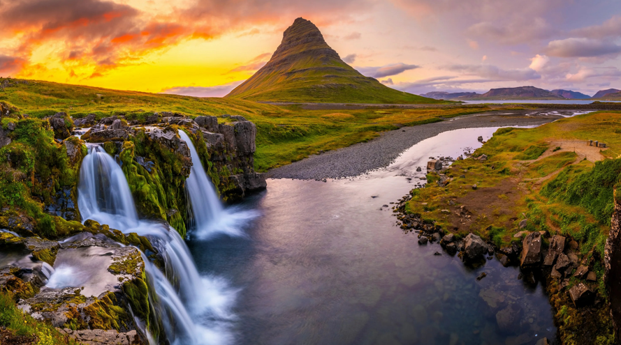 【草帽山】位于斯奈山半岛北海岸,外形似草帽,美如童话仙境。瀑布环绕,湖光山色相映,还是《权力的游戏》取景地,摄影极光的绝佳之选。