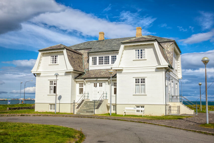 【霍夫迪楼】位于冰岛雷克雅未克,建于 1909 年,是两层白色小洋房。它见证冷战结束,多位名人曾到访,承载厚重历史,是冰岛独特人文景观。