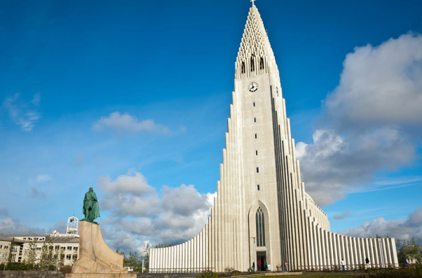 【哈尔格林姆斯大教堂】位于冰岛雷克雅未克市中心,高 74.5 米,1945-1986 年建成。外形独特似管风琴,内部有巨型管风琴,登顶可览全城美景。