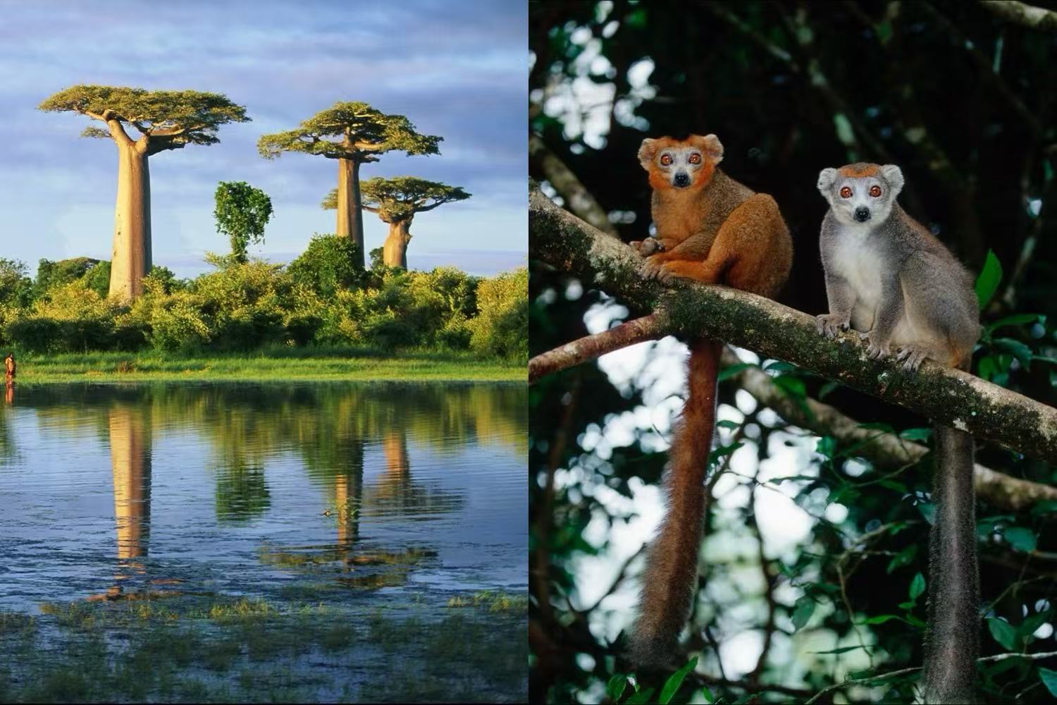马达加斯加是被时间遗忘的生命方舟,1.6亿年的孤独演化,造就了90%以上的独有物种。昂达西贝保护区内,跳舞狐猴的灵动跳跃、变色龙的悄声变色,仿佛闯入真实的动画世界;猴面包树大道的落日余晖,将草原染成金色,随手定格都是穿越时空的魔幻画面,这里是自然爱好者的终极朝圣地。
