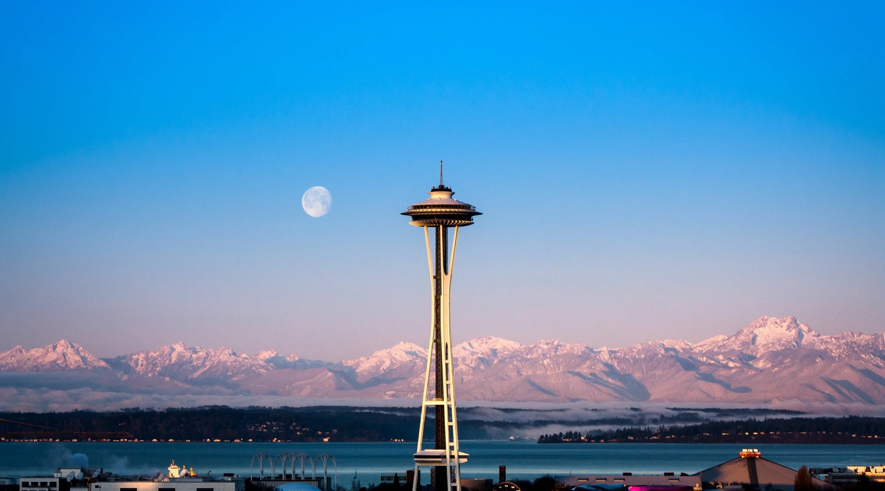 乘机前往西雅图。 参观派克市场,是西雅图的标志性景点,全世界第一家星巴克就在这里,可以欣赏热闹非凡的“抛鱼表演”;太空针塔,西雅图的地标性建筑之一,离地面五百二十英尺高度的瞭望台能俯看西雅图360度全景;奇胡利玻璃艺术馆,收藏了玻璃艺术家Chihuly的大量作品,彩色的玻璃被吹制成各种样子,在光影的照耀下绚丽多彩。