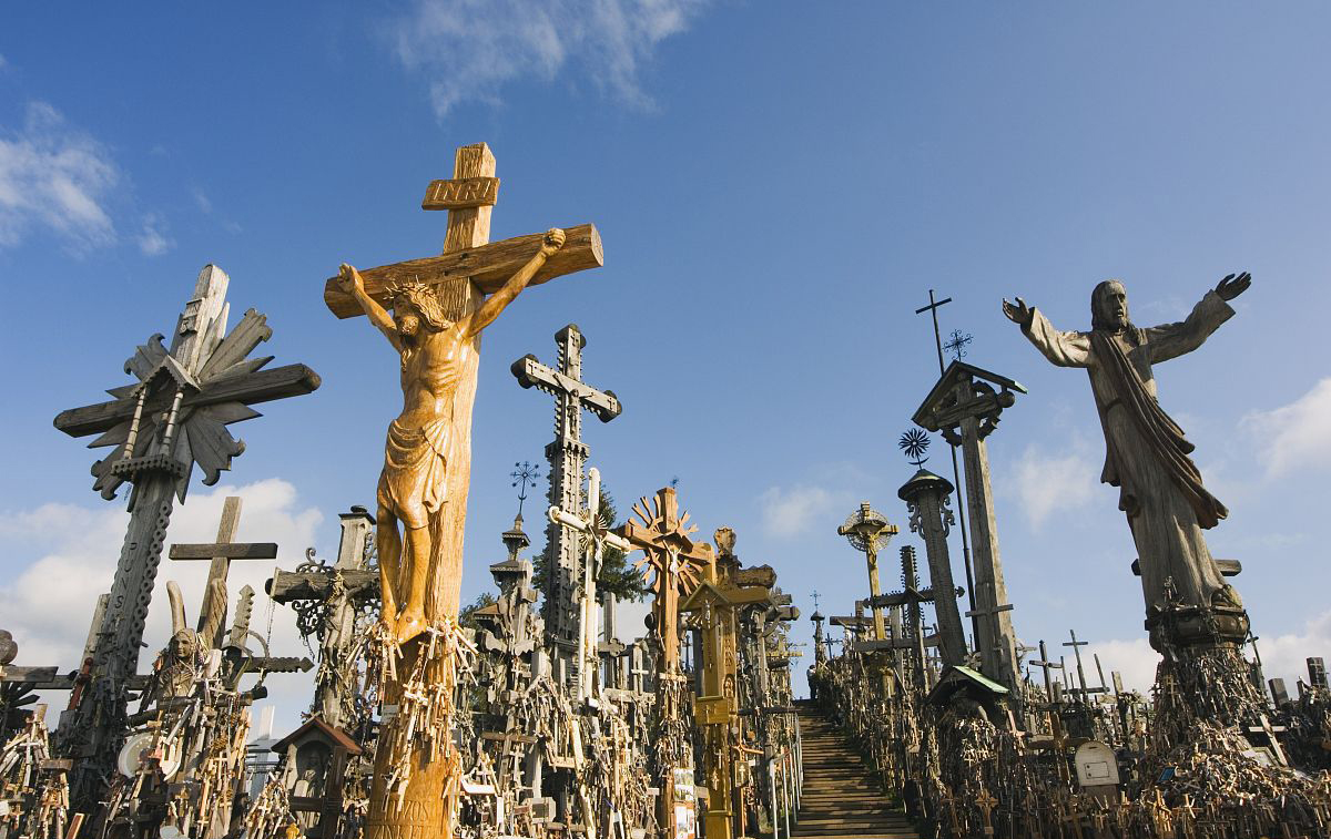 之后,前往位于立陶宛境内的十字架山,这里计有大大小小55000座十字架,每一个十字架背后常常都印证着一段故事,立陶宛历史上不少战争和革命都不同程度地保留在这些十字架上。 之后,抵达维尔纽斯。参观主教教堂,教堂由第一位归化为基督徒的立陶宛皇帝所建,于1998年在教堂的墙壁发现最少价值一千万美元的珍藏,多数为教会的珍品,考古学家相信此乃1655年为避免俄罗斯入侵维尔纽斯时抢夺而藏于墙壁内。之后游览古城区、市政厅,属晚期巴洛克式建筑,并带有早期古典主义和哥特式建筑风格、总统府,他的所在地是15世纪时的主教宫殿,历史上曾有许多知名人士造访。