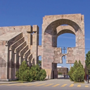 早餐后,乘车前往参观希腊式神殿-加尼神庙Garni Temple★,这是在亚美尼亚境内的太阳神庙,坐落于科泰克省加尼村(Garni)的一个三角形悬崖上,周围的视野很棒,营造出遗世孤独的气氛,是亚美尼亚遗留的唯一的希腊罗马式建筑。前往埃奇米亚津Echmiadzin,埃奇米亚津是亚美尼亚古都,游览埃奇米亚津教堂★,埃奇米阿津大教堂是亚美尼亚第一座教堂,教堂里设有宝物馆,里面保存着无双珍宝和圣物,从诺亚方舟上的木片到曾刺入耶稣胸口的矛头,以及千年前彩绘的《福音》书等,走在教堂里,仿佛就像阅读一部基督教历史书,返回亚美尼亚首都—埃里温,瀑布台阶Cascade Complex★,瀑布台阶是埃里温的一大城市街景,顶部是亚美尼亚苏维埃50周年纪念碑,瀑布台阶内部有电梯(开放式,免费)可以坐到顶部,然后可以一路走下来好好欣赏远方的城市和身边的行为艺术品。
