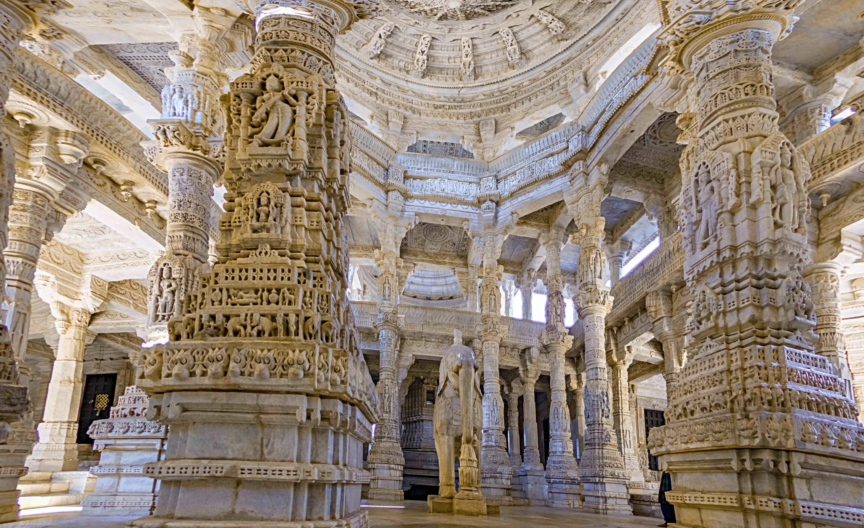 乘车前往白色城市—“沙漠中的威尼斯”乌代布尔。参观【城市宫殿City Palace】殿内曲径通幽,大理石雕刻,宝石镶嵌;【皮丘拉湖Lake Pichola】是这座城市的灵魂;【千柱神庙】是印度至大的耆那教神庙,由1444根雕刻着神灵走兽的大理石柱和80多个精美穹顶构成。