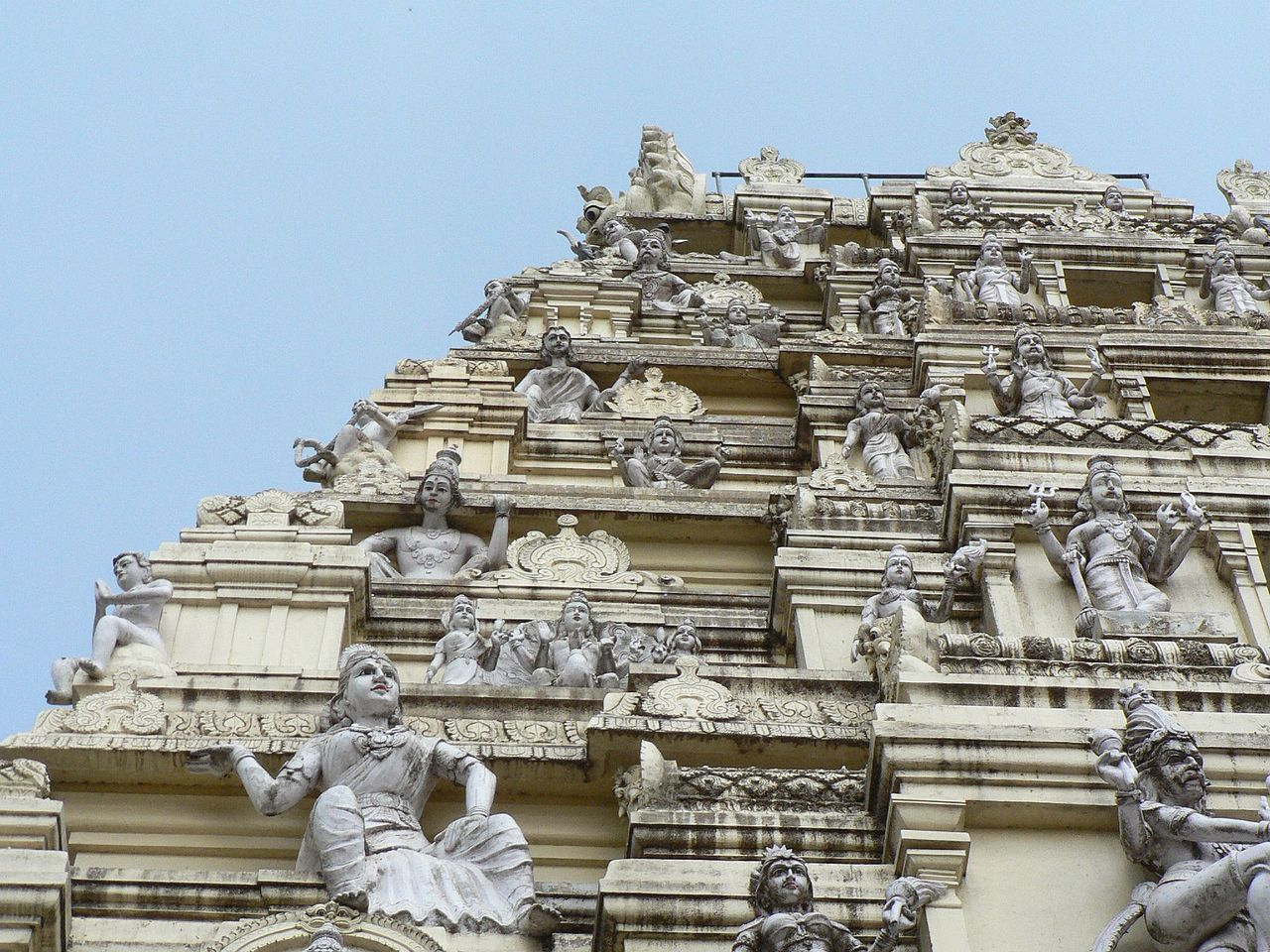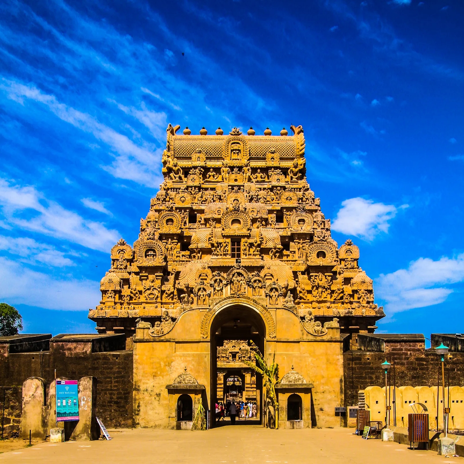 早餐后,参观【布里哈迪希瓦拉神庙】,位于坦贾武尔,是一座供奉印度教湿婆神的神庙。是印度现存最高的寺庙之一,也是达罗毗荼建筑风格的杰出代表。主殿第一层走廊上雕有湿婆的108种舞姿(其中27幅浮雕未完成)。