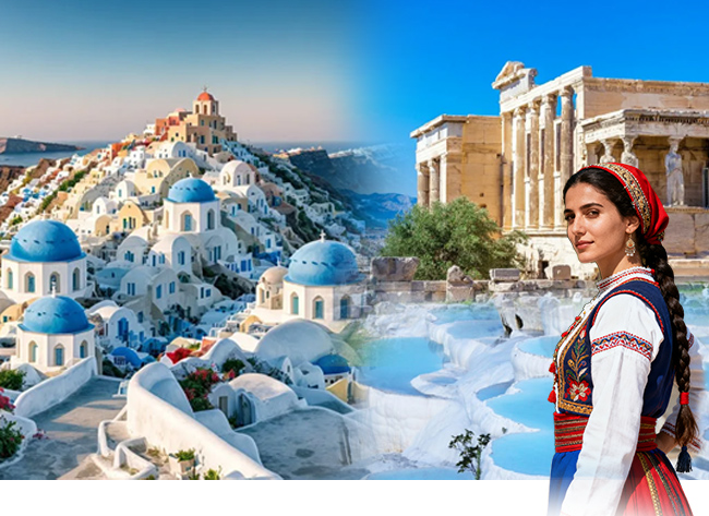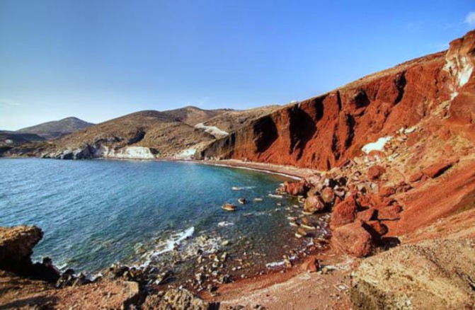 酒店早餐后,出发该岛最高处PIRGOS,纵览小岛全貌或前往观看奇特的由火山熔岩形成的红色海滩,黑海滩。前往圣托里尼岛的首府-费拉。